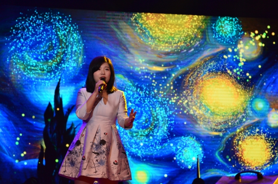 这个灯火辉煌的夜晚带给我们的不仅是视觉的享受,也让我们的耳朵与音乐来一场美丽邂逅。流行歌曲串烧节目很荣幸邀请到王斌书记与梅仂盈辅导员上台献唱《给自己的歌》,“似水流年”冠军杨江陵自弹自唱的《Let her go》深情婉转,三名新生合唱的《青春修炼手册》和《离开地球表面》释放阳光活力,燃烧青春热情。微亮的舞台灯光,美妙静谧的背景视频以及那醇厚朴实的嗓音,民谣又如一杯老酒,一碗小米粥,滋润我们喧闹后逐渐沉寂下来的心灵。