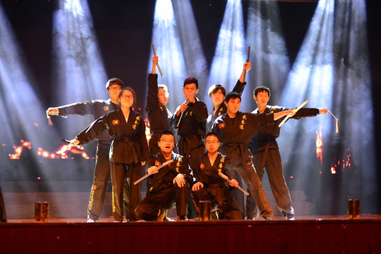晚会开场首先由副院长殷国栋老师致辞,伴随着倒计时与隆隆的擂鼓声,迎新晚会正式开始。动感酷炫的开场舞Electric Shock充分带动现场气氛,在冷烟喷薄而出的瞬间引爆全场。由本院独创的创意舞蹈I·Robot将现代舞元素与前沿科技成果完美结合,首次将机器人搬上舞台,与演员们进行一场有趣的互动较量,让观众耳目一新。双截棍表演《龙舞》一招一式刚劲有力,威武霸气,暗场表演彩棍挥舞起来五光十色,绚丽夺目,赢得观众一片叫好。