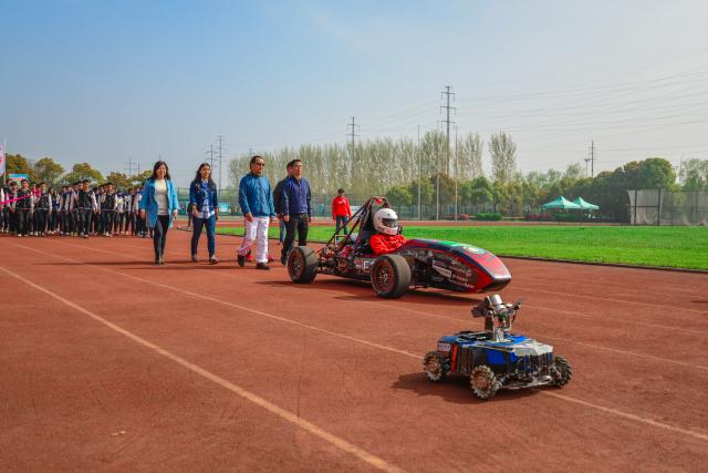 迎面向我们走来的是我院极具特色的方阵,跟随在院旗之后的是机器人俱乐部的四辆小型战车组成的“mini”方阵,他们可是在大学生机器人大赛Robomasters比赛中获得过全国二等奖的战车队伍哦。随后开道的是东南大学方程式车队的纯电动方程式赛车,他们在2015中国大学生电动方程式大赛中获得车辆仿真学第一名,全国总成绩第17,江苏高校排名第一的好成绩。今年的522日恰逢机械工程学院建院100周年院庆,同学们也借着各种机会用自己的方式表达对学院的祝贺。跟在赛车之后的“方阵”是由同学们组成的“ME 100”的字样,ME由蓝色丝带组成,与天同色,开朗,博大;100由红色丝带组成,与血同色,活力,热情。他们举着印有“ME 100th Anniversary Happy Birthday”的旗帜令人眼前一亮。在此,我也代表我院学生会成员表示对百年院庆的祝贺。