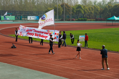 9点整伴随着《运动员进行曲》的音乐响起,各学院入场式方队便依次进入操场。每个院系的运动员代表们都昂首挺胸,迈着矫健的步伐,在艳阳高照的赛道上阔步向前。