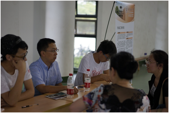 为方便广大考生及家长加深对机械专业的了解,咨询点学院党委副书记王斌老师及副教授胡建中老师耐心详细地为考生家长解惑答疑,分析机械专业前景与就业方向。更有大四优秀学长热心解答有关专业学习、日常生活方面的问题。全场的亮点之一是,咨询点还展出力魔车队电车与机器人俱乐部的机器人战车,全面体现机械人丰富充实的课余生活,引来不少同学驻足。