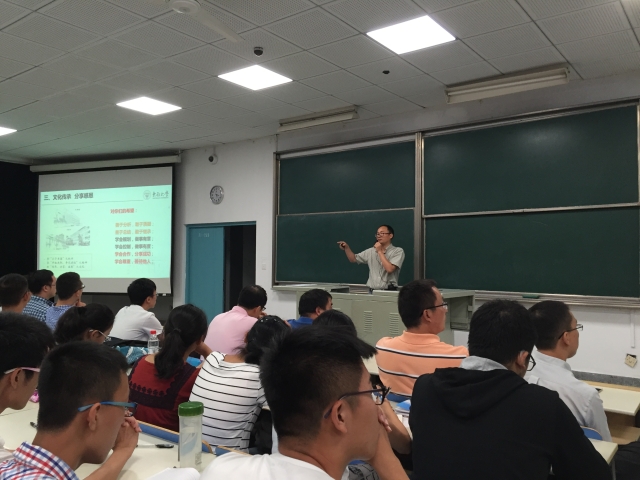 20168291830分,机械工程学院16级本科生第一次年级大会在教1-211正式开始。学院院长倪中华、党委书记张志胜、副院长陈云飞、副院长殷国栋、工业工程系系主任肖峰、学院团委各位老师、16级各班班主任以及全体224名新生到场参会。会场座无虚席、气氛热烈。本次见面会由学院党委副书记王斌主持。
