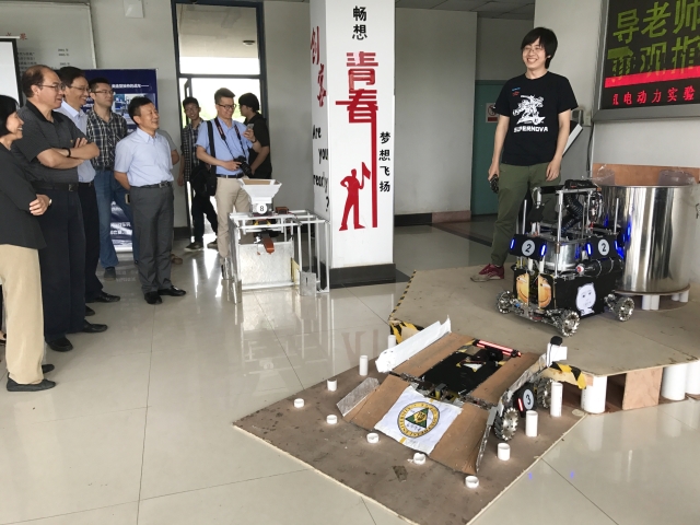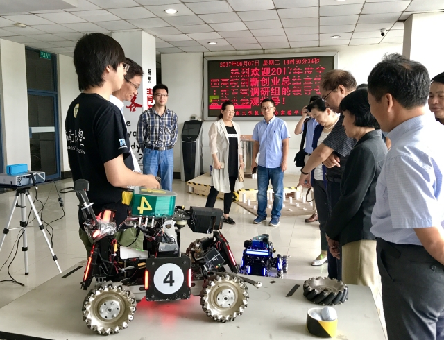 66日下午,2017年度全国高校创新创业总结宣传工作专家调研组到我院检查创新创业工作,东南大学党委副书记郑家茂、学生处处长孙莉玲、教务处副处长沈孝兵、学生处副处长宋健刚等老师陪同检查。机械工程学院党委副书记王斌、团委副书记梅仂盈及东南大学机器人俱乐部、东南大学方程式赛车队的相关负责同学接待了专家调研组。