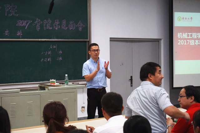 94日晚1830,机械工程学院在教学楼J1-211举办了2017级本科新生见面会。学院党委书记张志胜、副院长陈云飞、孙蓓蓓、殷国栋,各系系主任,学办各位老师和各班班主任出席了见面会。本次会议由机械工程学院党委副书记、副院长王斌主持。