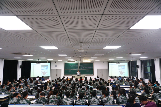 接着机械工程学院副院长、“长江学者”陈云飞教授为大家带来了精彩的演讲。陈云飞老师从宏观和微观两方面,对机械工程这一学科作了详细的介绍,并鼓励大家多钻研学习,多读好书,同时更须养成锻炼身体的好习惯,给2017级新同学们上了生动的一课。