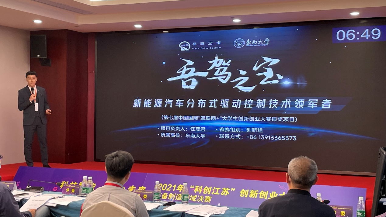 江苏省科协党组成员、副主席冯少东,团省委副书记张迎春,南京工程学院副校长朱晓春,省工信厅产业人才与合作处二级调研员秦飞出席了开幕式并共同启动大赛。在装备制造领域的决赛中,来自清华大学、同济大学、南京理工大学、东南大学、中国中车、国家电网、中电十四所等知名高校和大型国企的30个创新创业团队同台竞技。KY在线官网博士研究生任彦君牵头完成的“吾驾之宝:新能源汽车分布式驱动控制技术领军者”项目,通过精彩项目路演和答辩,得到了专家评审组一致认可,成功斩获大赛一等奖。我院近年来持续推动创新创业和实践育人工作深入开展,不断完善创新人才培养有效模式、激励方式和长效机制,强化学生科学精神和创新实践能力培养,该奖项是我院在“双创”领域斩获的又一重量级荣誉。