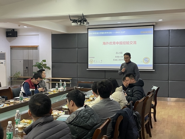 20231227日,东南大学海外青年学者论坛机械工程学院分论坛以线上线下相结合的方式顺利召开。分论坛由学院党委书记倪中华主持,副院长陈震、青年人才代表孙东科、吕之阳、王乾乾、朱一凡、王晓宇、胡涛、刘小超、李永哲、温海营等老师出席分论坛,与16位海外青年学者展开交流。