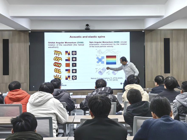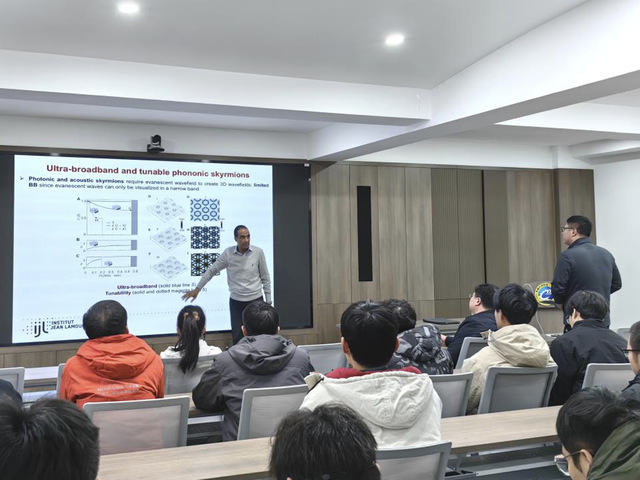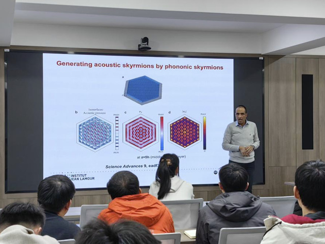 20241210日,Badreddine Assouar教授应邀来我院南高厅作题为《Phononic Skyrmions: A New Horizon for Structuring Sound and Vibrations?》的学术报告。