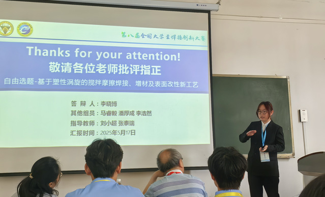 本次大赛作品分为固定命题和自选命题,通过作品现场测试和答辩环节综合确定最终比赛成绩。在学校教务处、机械工程学院的大力支持下,刘小超、李永哲两位老师带领东南大学代表队参加本届大赛全国决赛,并受邀担任大赛评委。经过紧张激烈的比赛,我校由刘小超、张泰瑞两位老师指导,马睿毅、李晓博、潘厚成、李浩然4位同学的项目《基于塑性涡旋的搅拌摩擦焊接、增材及表面改性新工艺》获自选命题一等奖;由李永哲、裴宪军两位老师指导,陈明渝、刘百恒、吴宗煌3位同学的项目《高载重比桥梁式桁架焊接承载结构设计》获固定命题二等奖;由张泰瑞、刘小超两位老师指导,朱培轩、林泽熙、徐梦怡3位同学的项目《基于双相不锈钢激光熔覆硬质合金层的船舶复合轴系制备》和由王青华、张泰瑞两位老师指导,尹艺斐、刘彦廷、刘鸿霖3位同学的项目《基于激光熔覆硬质合金的模具钢修复方法》获固定命题三等奖。