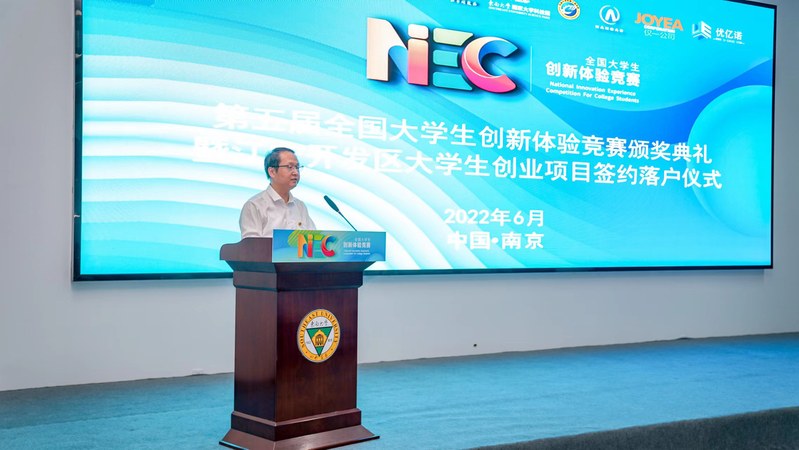 2022年6月6日,在东南大学120周年华诞之际,第五届全国大学生创新体验竞赛颁奖典礼暨江宁开发区大学生创业项目签约落户仪式在东南大学国家大学科技园江宁园区创新中心楼一楼路演厅举行。本次竞赛由中国创造学会主办,东南大学和安徽工业大学联合承办,东南大学国家大学科技园、安徽工业大学创新教育学院、KY在线官网组织实施。